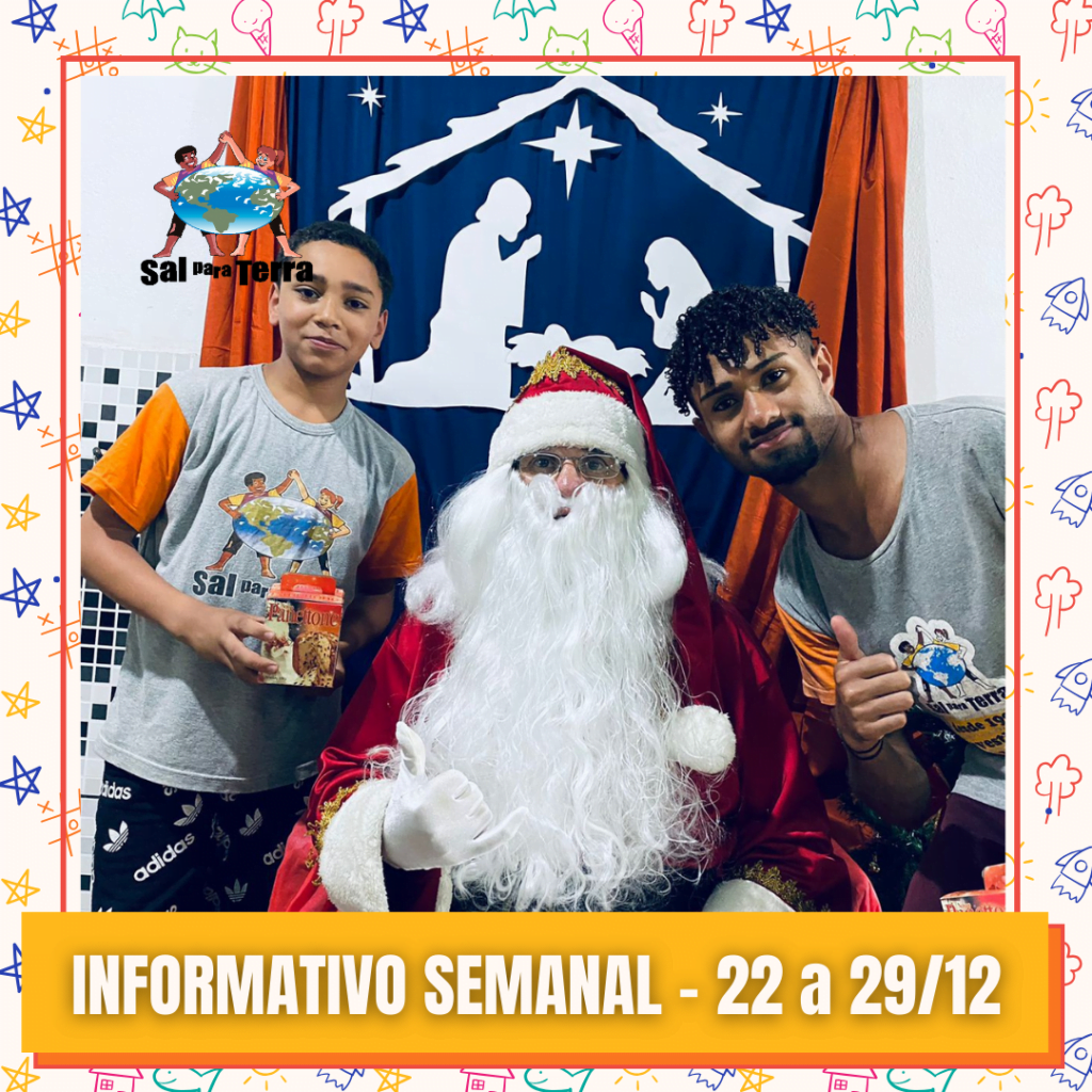 Informativo semanal ⭐️Papai Noel e distribuição de panetones ⭐️Dia de presentinhos Venha nos fazer uma visita para conhecer a Ong!! Rua Felipe Camarão, 435 – Retiro Tem um talento e gostaria de abençoar nossas crianças ensinando-as ? Gostaria de nos ajudar com uma doação? Toda ajuda é bem vinda para cuidarmos […]